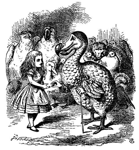 Нелепая птица Додо — сам Льюис Кэрролл. Страдая заиканием, он часто представлялся как «До-до доджсон» (настоящая фамилия писателя). Здесь и далее мы приводим иллюстрации, которые вышли в первом издании книги.