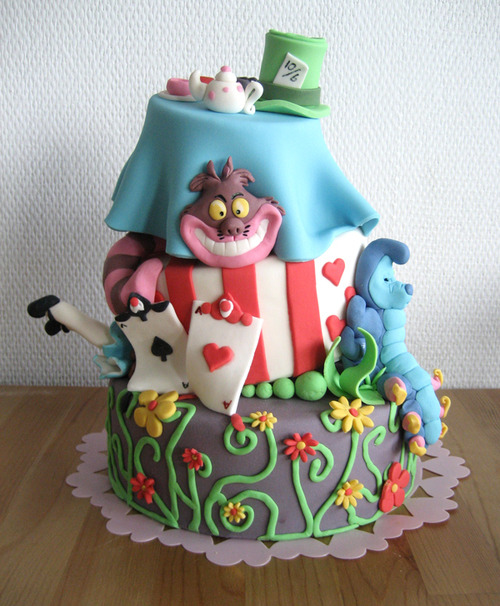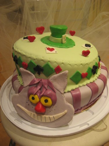 Еще варианты тортов с Чеширским котом и без него: