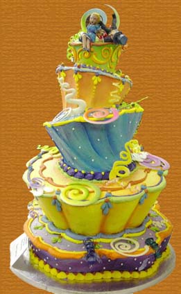 Трехъярусный торт с Чеширским котом, украшенный марципаном: