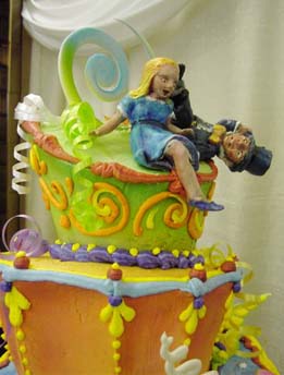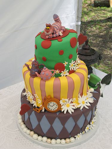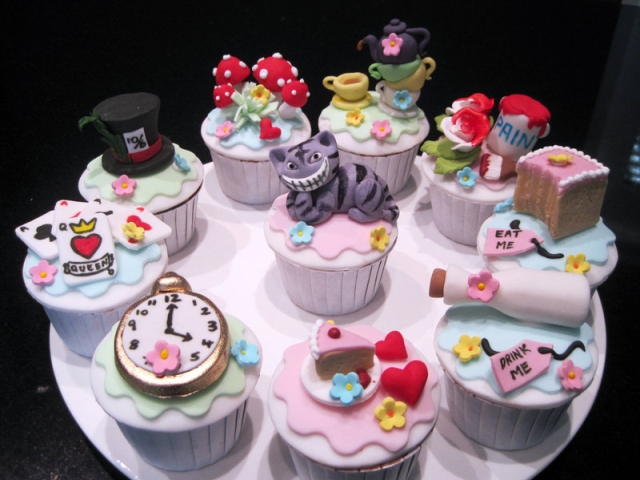 Как можно устроить «безумное чаепитие» без тортов и десертов? Без них просто невозможно обойтись. Многочисленные торты по мотивам книги «Алиса в Стране чудес» — это не просто сладости. Это настоящие произведения искусства. Торты необычных форм украшают фигурками персонажей, вылепленными из марципана.