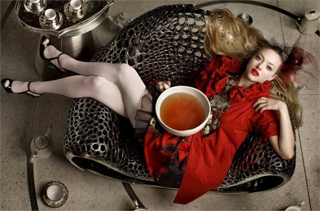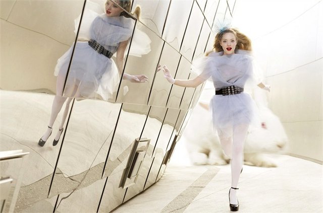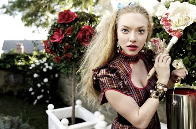 Действие этой фотосессии разворачивается в центре мегаполиса. Но, несмотря на это, Алиса занимается привычными делами: красит розы, с помощью фламинго играет в крокет и удивляется всему вокруг. Автор фотосессии — фотограф Марк Селиджер (Mark Seliger), Алису сыграла Аманда Сейфрид (Amanda Seyfried). Фотосет подготовлен по заказу итальянского издания Vogue.