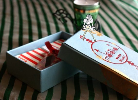Коробка игральных карт сделана из плотного картона с объемной печатью. Благодаря великолепному оформлению упаковки она вполне может стать необычным подарком. Карты напечатаны на дизайнерской бумаге с мелкими вкраплениями, напоминающими брызги шампанского. Колода состоит из двух частей: 36 игральных карт + колоды для игры в мафию — итого 50 карт. Тираж — всего 5 экземпляров.