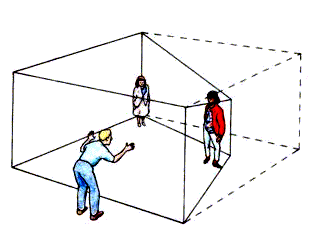 Вторая иллюзия: объекты, которые находятся в комнате, быстро увеличиваются или уменьшаются по мере движения от дальнего угла к ближнему.