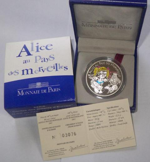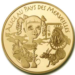 Монетный двор Франции в 2003 году выпустил серию из восьми монет со сказочными персонажами, одна из монет серии посвящена «Алисе в Стране чудес». Сюжет сказки отчеканили на двух монетах номиналом 1½ € и 20 €.