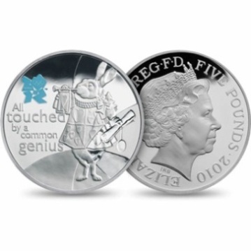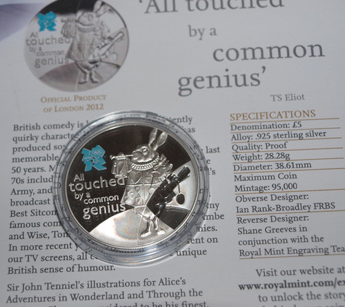 Монета вошла в цикл, посвященный британскому юмору, который был выпущен в честь проведения Олимпиады в столице страны. На ней отчеканена цитата из цикла поэм Томаса Элиота «Четыре квадрата» — All Touched by a Common Genius.
