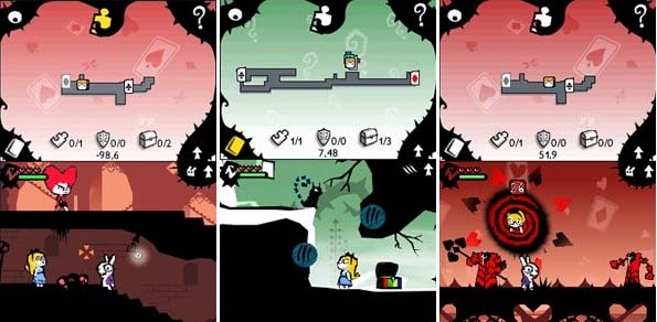 По ходу прохождения нужно решать головоломки и открывать новые миры. Во всех вариациях можно выбрать героя, за которого будешь играть. У каждого героя есть своя волшебная способность. Например, Чеширский кот умеет не только сам становиться прозрачным, но и делает невидимыми другие объекты, а Белый кролик умеет останавливать время. Вот только Алисой играть нельзя — разработчики предлагают во время игры взглянуть на сюжет под новым углом, а не глазами Алисы.